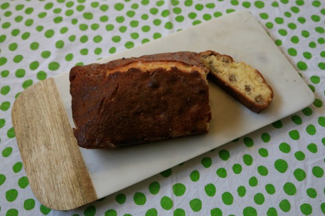 Pour into a greased and base-lined 21x15cm loaf tin (ours was a little smaller).