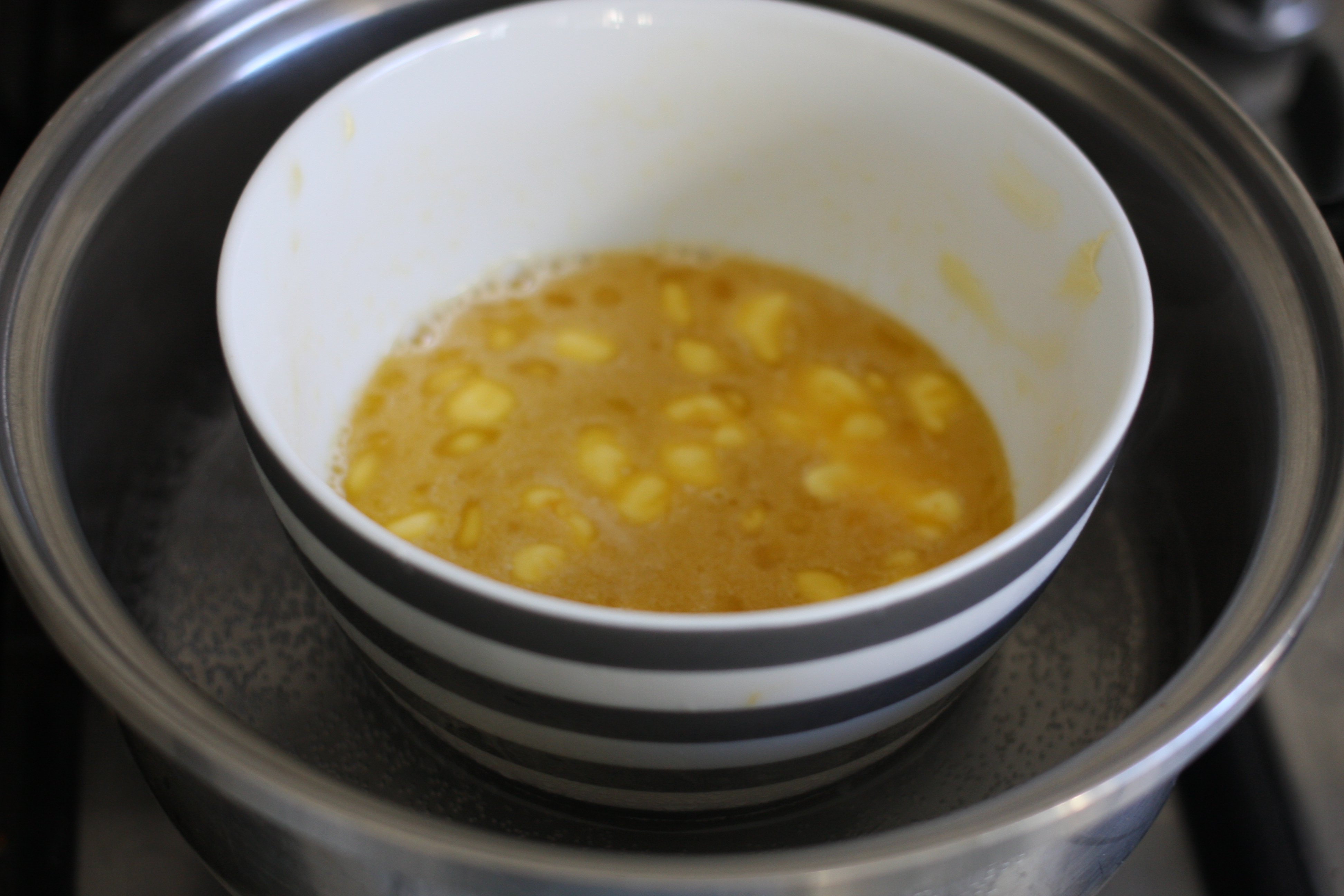 My butter refused to dissolve in this, so I simmered a little water in a pan and put my bowl over it until it melted. If you have a microwave you could probably pop it in there for a few seconds.